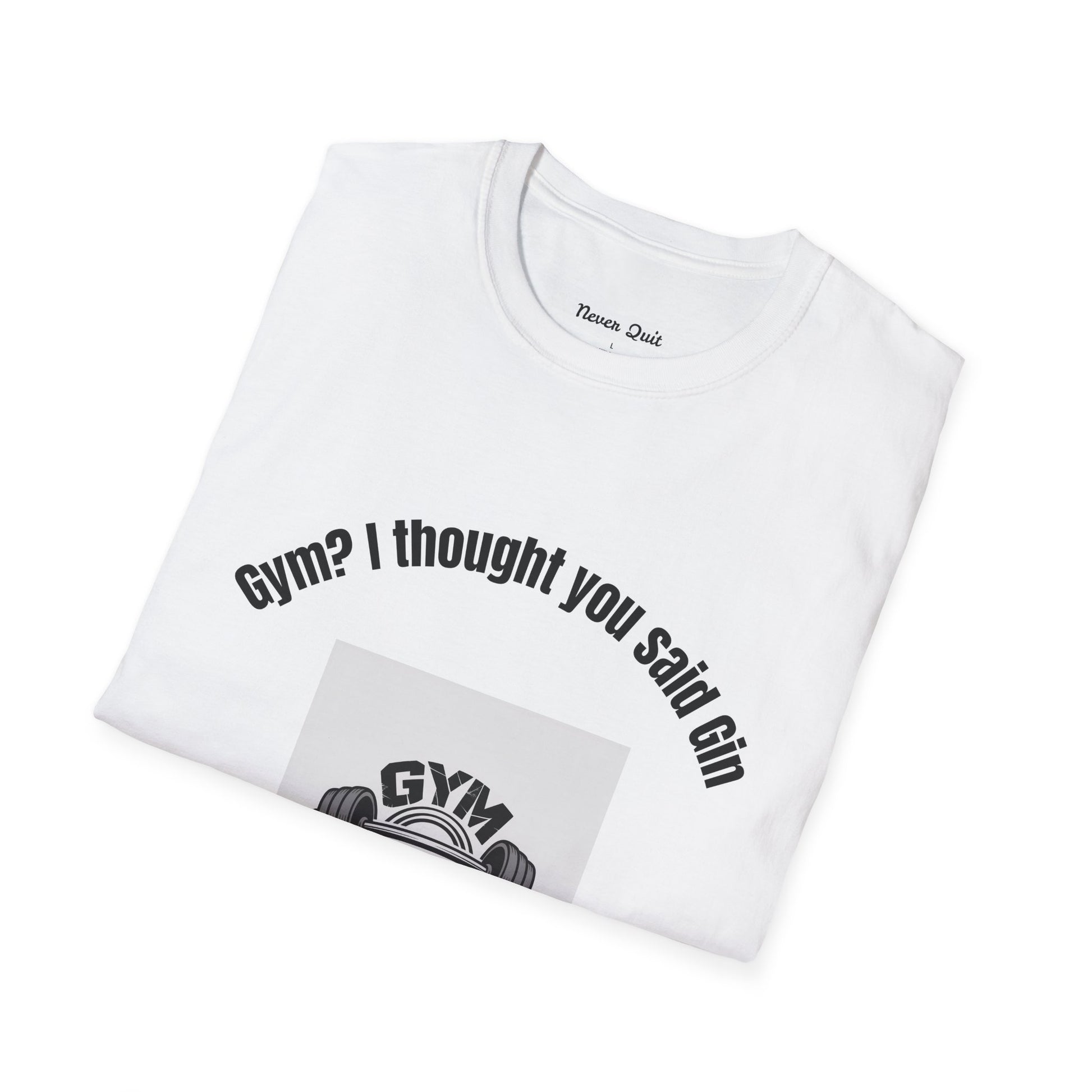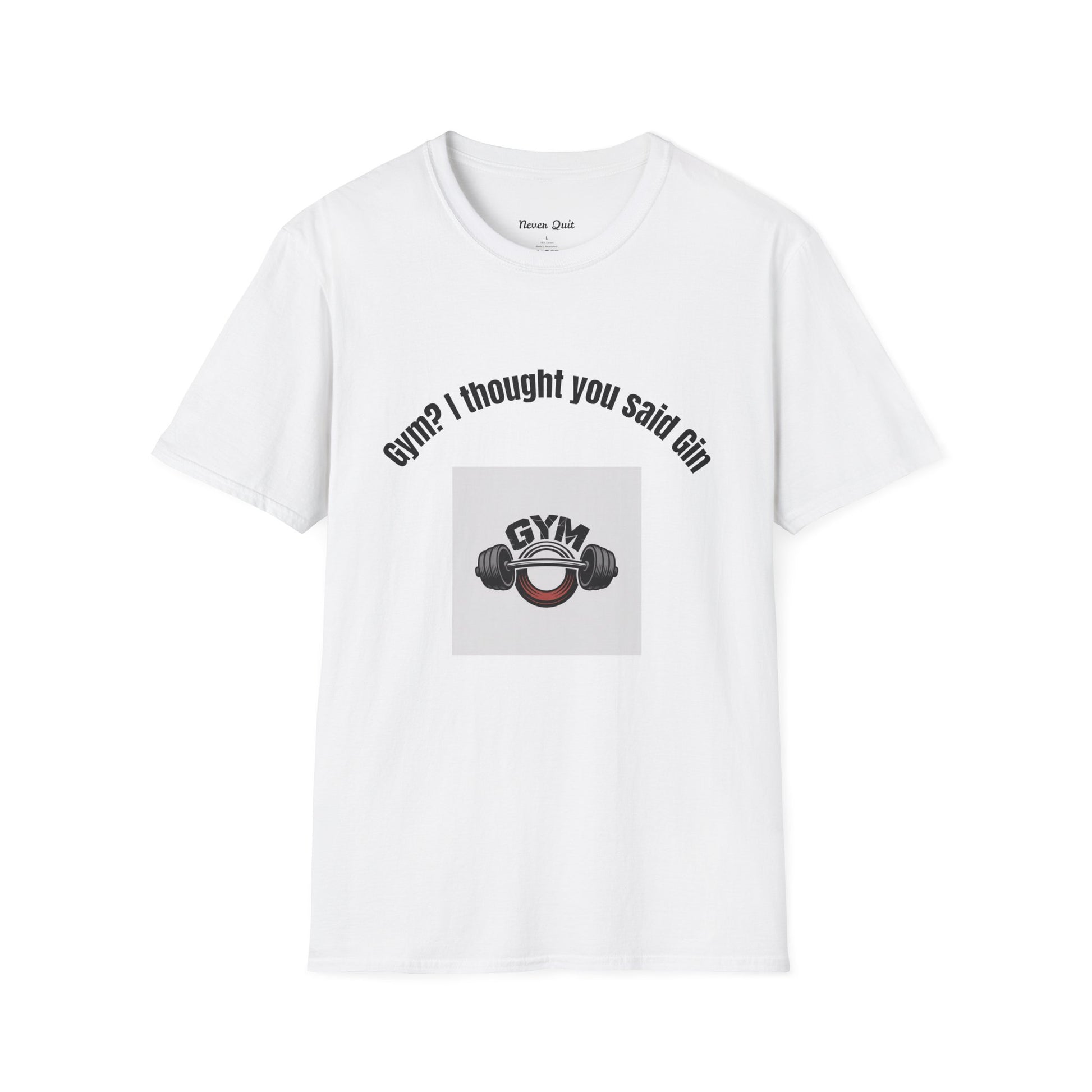 Gym? I Thought You Said Gin T-Shirt — Funny Workout Tee with Barbell Graphic